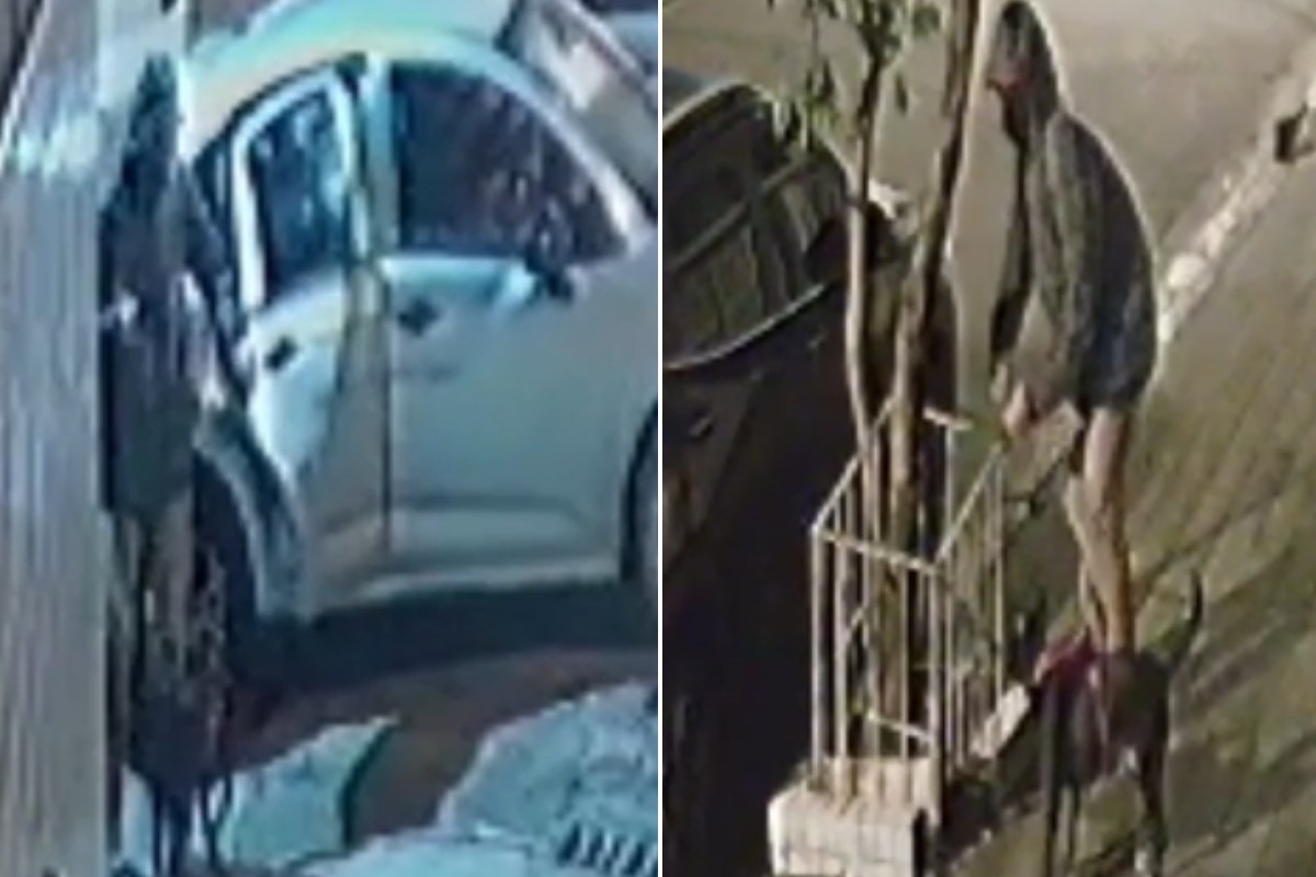 Um homem foi filmado amarrando um cachorro em um canteiro e o abandonando no bairro Embaré, em Santos, no litoral de São Paulo. Imagens obtidas pelo g1 mostram o momento em que o suspeito desce de um carro pequeno acompanhado do animal e o deixa sozinho no local. O caso ocorreu na noite de sexta-feira (4) na Rua Delfim Moreira.