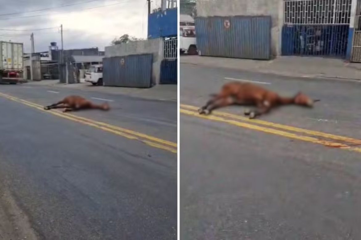 Cavalo morre atropelado e condutor pode ser multado por omissão de socorro.