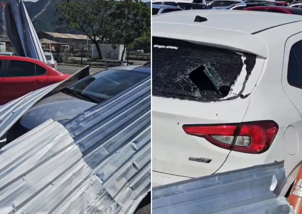Rajadas de vento que atingiram Cubatão (SP) derrubaram parte do telhado de uma estrutura da Refinaria Presidente Bernardes (RPBC), danificando dezenas de carros estacionados no local. O incidente ocorreu na última segunda-feira (28), quando os ventos chegaram a 111 km/h na Baixada Santista, causando estragos em diversas cidades da região. Segundo a Petrobras, ninguém ficou ferido e a situação não impactou as operações da companhia. Imagens do local mostram os veículos danificados após serem atingidos pela estrutura. A Petrobras informou que está acompanhando a situação e avaliando as medidas cabíveis. A Secretaria de Segurança Pública de São Paulo (SSP-SP) relatou que não houve registro de ocorrências junto à Polícia Civil. Além dos danos em Cubatão, as rajadas de vento provocaram quedas de árvores e outros estragos em Santos e Mongaguá, onde um portão desprendido de uma garagem atingiu um ônibus. Em Iguape, os ventos derrubaram árvores, destruíram o muro de um campo de futebol e danificaram 34 tendas montadas para a Festa de Bom Jesus de Iguape, uma das maiores celebrações religiosas do estado.
