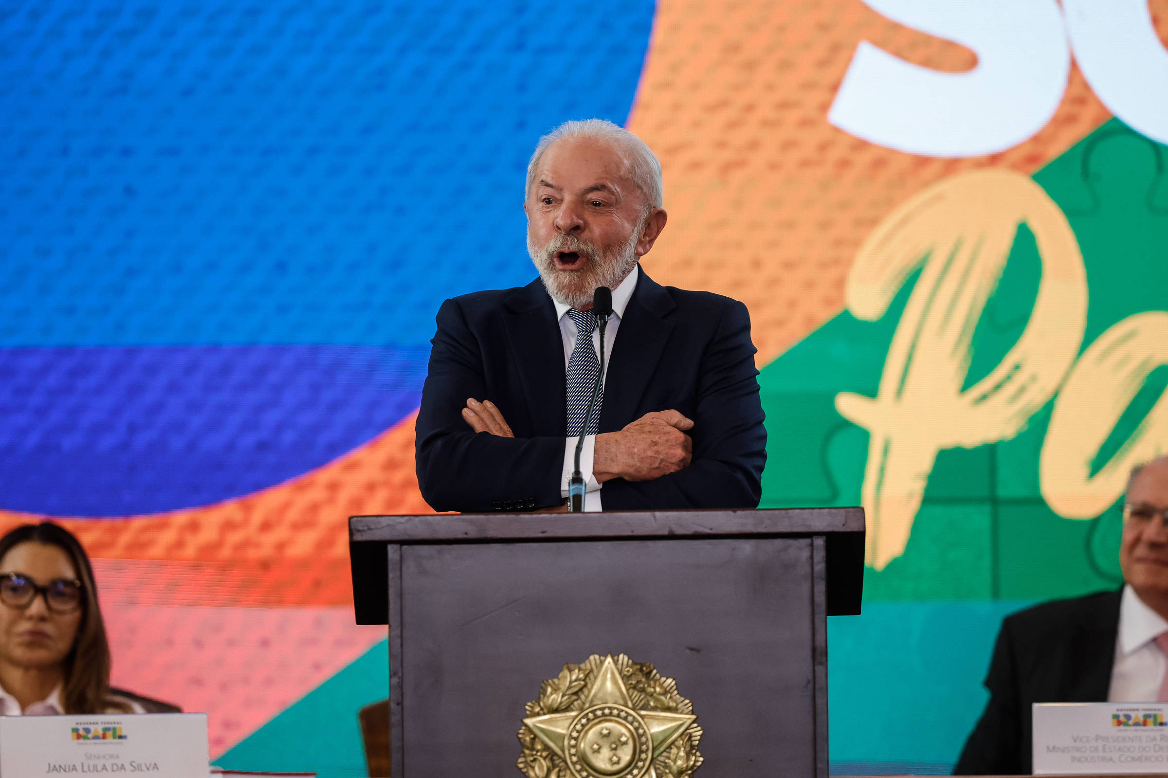 O presidente Lula (PT) evitou comentar sobre a prisão domiciliar de Jair Bolsonaro (PL) durante a apresentação dos trabalhos do Conselhão, realizada nesta terça-feira (5). Lula enfatizou que sua prioridade era discutir o Brasil e trazer boas notícias. “Hoje é um dia de dar boas notícias. Vim comprometido a não falar muito da taxação, mas tenho que falar porque também, se eu não falar, vocês vão dizer ‘por que Lula não falou? medo do Trump?’. Também não quero falar do que aconteceu com aquele outro cidadão, que tentou dar o golpe…quero falar é do país”, declarou.