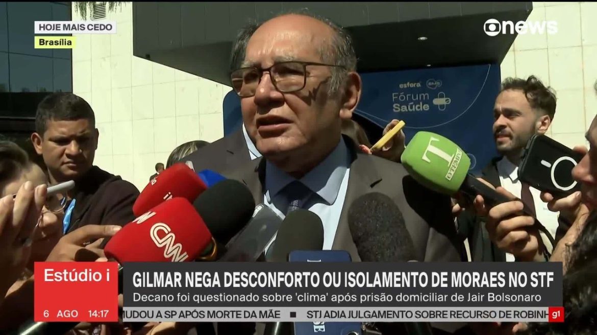 O ministro do Supremo Tribunal Federal (STF) Gilmar Mendes ironizou nesta quarta-feira (6) a revogação do visto de entrada nos Estados Unidos pelo governo americano durante o lançamento de seu livro “Jurisdição Constitucional da Liberdade para a Liberdade”. Em seu discurso, Mendes afirmou que poderia estar falando em capitais europeias, como Roma, Paris ou Lisboa, mas não em Washington, recebendo aplausos da plateia. O evento contou com a presença do presidente do STF, Luís Roberto Barroso, e dos ministros Edison Fachin, Flávio Dino e Luiz Fux, além do procurador-geral da República, Paulo Gonet.